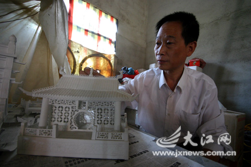 羅冬根是鉗工出身,直到1990年才進(jìn)入陶瓷行業(yè)。他是一位紅學(xué)迷,最大的興趣是制作建筑模型。他說:“我想趁著現(xiàn)在還做得動(dòng),做一件前無古人的作品,好給后輩留下一點(diǎn)什么,同時(shí),也想以此證明景德鎮(zhèn)的瓷雕水平。2001年我再讀《紅樓夢》時(shí)突發(fā)奇想,決定雕刻書里的‘大觀園’建筑群。”