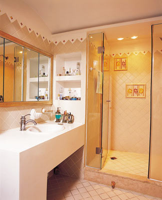 瓷磚活色粉底:衛(wèi)浴室的墻壁多用瓷磚鋪成,為保持其清潔和亮麗,可使用多功能去污膏進(jìn)行清潔。至于瓷磚縫隙,則先用牙刷蘸少許去污膏去除污垢,再在縫隙處用毛筆刷一道防水劑即可。這樣不僅能防滲,還能防霉菌生長(zhǎng)。
