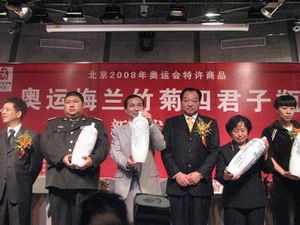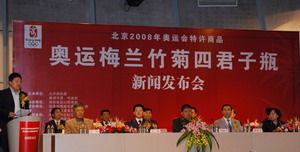 2007年10月13日,在北京奧運(yùn)會(huì)倒計(jì)時(shí)300天之際,由北京奧組委,湖南省株州市委市政府共同主辦的“2008年奧運(yùn)會(huì)特許商品----奧運(yùn)梅蘭竹菊四君子瓶新聞發(fā)布會(huì)”在首都博物館舉行。毛新宇博士,北京奧組委市場(chǎng)開發(fā)部副部長(zhǎng)王禹,株州市人民政府市長(zhǎng)陳君文,中國(guó)第一位奧運(yùn)冠軍許海峰,奧運(yùn)冠軍錢紅,中國(guó)陶瓷工業(yè)協(xié)會(huì)秘書長(zhǎng)傅維杰,北京收藏家協(xié)會(huì)常務(wù)副會(huì)長(zhǎng)王鈞,醴陵市市委書記謝清純,湖南省韶山管理局副局長(zhǎng)胡德昌,毛澤東同志紀(jì)念館館長(zhǎng)夏佑新,現(xiàn)場(chǎng)還有奧運(yùn)特許零售商代表、首都北京各新聞媒體的記者,以及廣大收藏愛好者和社會(huì)各界人士共同出席了新聞發(fā)布會(huì)。