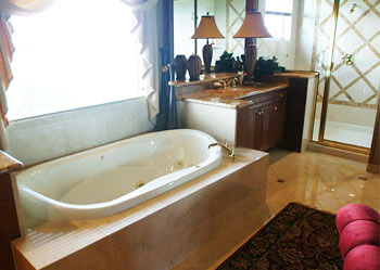 現(xiàn)代家居生活不再單純圍繞客廳或起居室進(jìn)行,你可以在家里的任何空間隨時(shí)享受隨意、舒適的休閑生活。海天環(huán)藝裝飾公司首席設(shè)計(jì)師王巖嶼告訴記者,近兩年,隨著美式別墅和美式舒適裝修風(fēng)格的流行,快樂廚衛(wèi)生活成為必選。現(xiàn)代家居休閑概念是:你可以在浴室內(nèi)邊洗泡泡浴邊看電視,可以在浴室清爽濕潤的環(huán)境中練習(xí)瑜伽,可以在廚房享用燭光晚餐、看大片,而在洗手間設(shè)置一個(gè)男性化妝臺(tái)也成為新時(shí)尚。