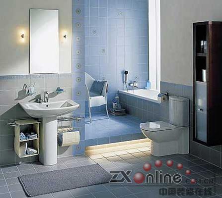 藍(lán)色和白色都是讓人感覺平靜的色調(diào),而瓷磚上少數(shù)的花紋圖案使得浴室在這平靜中又不乏俏皮靈動(dòng)。局部配以經(jīng)典的灰色也使得浴室總體上更彰顯時(shí)尚感;盍、時(shí)尚、清新、浪漫集于一身,看看有誰能對(duì)這款浴室不心動(dòng)?單單是看著,不用碰到水就已經(jīng)倍感清涼。
