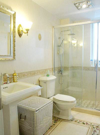 在小浴室選擇潔具、配件、裝飾品、以及其它材料的時候,必須要充分考慮尺寸大小、顏色、圖案或質(zhì)地的統(tǒng)一性。這樣的話,不管浴室風格是怎樣的特定,抑或是怎樣的組合,都能保持一種強有力的風格連貫性。還必須從實用的角度出,小地毯、舒適考究的椅子、精致的墻面以及垂簾固然可以創(chuàng)造傳統(tǒng)的浪漫情調(diào)。
