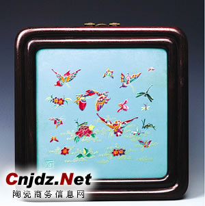 陳靜說,它獨特的地方有很多,如底色是綠彩,顏色很深,在上面“堆”上了蝴蝶、花卉等,然后在這個基礎上再加彩。“這些要在薄薄的版面上來實現(xiàn),控制起來其實很復雜。”