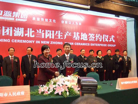 當(dāng)陽市領(lǐng)導(dǎo)李佑才、郭有明、張建一、段賢斌,湖北省經(jīng)委副主任劉進(jìn)文,湖北省經(jīng)委縣域經(jīng)濟(jì)處處長葛天平,新中源陶瓷企業(yè)集團(tuán)董事局主席霍熾昌、總裁霍鐮泉,廣東陶瓷協(xié)會副會長兼秘書長陳環(huán),副秘書長陳振廣,佛山市陶瓷協(xié)會秘書長尹虹,當(dāng)陽市委書記袁衛(wèi)東、市長范曉嵐等出席項(xiàng)目簽約儀式。新中源的經(jīng)銷商、供應(yīng)商以及陶瓷行業(yè)媒體《佛山現(xiàn)在資訊》、《陶瓷周刊》、《陶瓷信息》、《陶城報》、《中國建材報》、《陶業(yè)春秋》、《東西傳訊》、《建材周刊》、《建筑時報》、《陶瓷中國》、《陶瓷資訊》、《觀點(diǎn)》、《佛山日報》及搜狐網(wǎng)焦點(diǎn)家居網(wǎng)等400多人見證了簽約儀式。