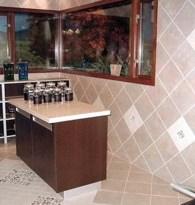 A:廚房磚適合選擇趨向于冷色調和淺色調的顏色,也可以選擇一些亮麗的色彩,如明黃、蘋果綠等作為點綴。瓷磚圖案最好是與廚房文化氛圍相關的,比如水果、食品、餐具等等。如果想增強空間的層次感,可墻磚以淺色為主,地磚選擇較之偏深的顏色。