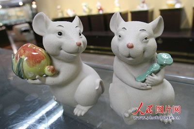 11月9日,拍攝的造型可愛(ài)的陶藝鼠