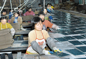 昨日,在宜陽龍翔建材有限公司瓷磚生產(chǎn)線上,工人們正忙著將瓷磚分級裝箱。該公司投資9000萬元建成的這條生產(chǎn)線,長達500多米。其輥道窯長達280多米,是目前國內(nèi)最長的輥道窯。