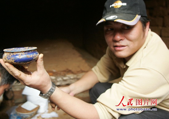 考古工作者從該墓室里,清理出的瓷器有青白鈾、藍鈾、綠鈾等,質(zhì)地光滑細膩,色彩柔和,造型古樸大方,有的器物上還有龍紋裝飾。下午4時,墓葬清理暫告一段落,共出土文物24件,包括藍釉瓷壺、藍釉三足瓷香爐、青釉瓷蓋罐、白瓷盅,龍紋青花瓷碗等,另有青白瓷碗、盤若干。