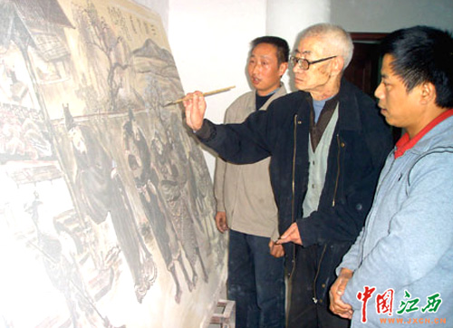 為了繪制這件作品,老人天天從遠在新橋的家中奔波于老鴉灘作坊,每日站立坯板前八九個小時繪畫,足足畫了一個多月,才在弟子汪春麟和劉新初的協(xié)助下,完成這幅超大型青花釉里紅人物畫瓷板佳作。這不僅是陶瓷工藝繪制燒成的一大進步,同時也顯示了景德鎮(zhèn)陶瓷藝術家的雄厚實力與永遠創(chuàng)新精神。