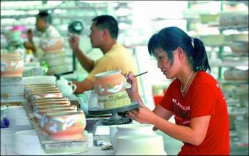 在中國幾大陶瓷產(chǎn)區(qū)中,廣東省潮州市可謂獨(dú)占鰲頭。2004年,該市被國家有關(guān)部門授予“中國瓷都”稱號,2006年,陶瓷工業(yè)的產(chǎn)值近200億元,其中90%以上出口,產(chǎn)品遍布世界各地。