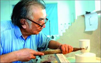 陶瓷藝術(shù)家楊永善(69歲)正在進(jìn)行創(chuàng)作。潮州許多陶瓷企業(yè)都采取與藝術(shù)家合作的形式,開發(fā)設(shè)計陶瓷產(chǎn)品并培訓(xùn)設(shè)計人才,目前,潮州已成為陶瓷藝術(shù)人才匯聚的重要區(qū)域。