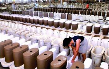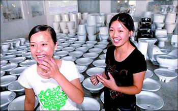 潮州新春天陶瓷公司員工對即將外銷的陶瓷衛(wèi)生潔具進(jìn)行檢查。潮州是全國最大的衛(wèi)生潔具生產(chǎn)基地,產(chǎn)品的外銷量在國內(nèi)同行中名列前茅,效益相當(dāng)可觀。