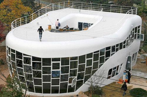韓國(guó)水源市前市長(zhǎng)沈載德花巨資精心建造了一座外形酷似馬桶的巨宅,這座“馬桶樓”將于11月11日舉行竣工典禮,目前,這座“別有風(fēng)味”的工程已經(jīng)到了收尾階段。