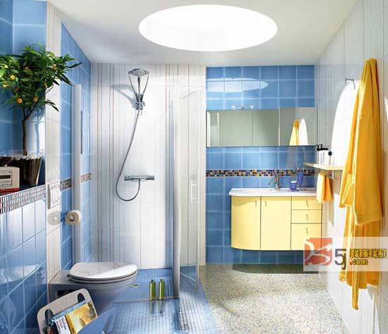 藍(lán)色是比較中性的顏色,在夏天讓人感覺清涼,在秋冬也不會(huì)讓人感覺冰冷,在浴室里適當(dāng)?shù)奶砑铀{(lán)色元素,會(huì)給人帶來身心自由的快樂感覺。