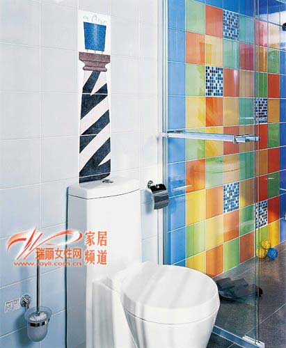 墻面上的絢麗打造,最容易為衛(wèi)浴生活營造氣氛,也是炫彩衛(wèi)浴攻略中的重點(diǎn)。在封閉式設(shè)計(jì)的衛(wèi)浴間里,炫彩墻面以各個(gè)功能區(qū)的裝飾性主題墻的方式出現(xiàn)較好,可以是兩三種色彩的瓷磚組拼,也可以在局部區(qū)域貼彩色壁紙,馬賽克裝飾也是不錯(cuò)的點(diǎn)綴手段。