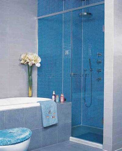 挑選合適的基底??不同色系的藍色瓷磚:馬賽克與瓷磚的搭配是這個衛(wèi)生間的設(shè)計重點,藍色系的靈活運用在這里是最關(guān)鍵的一步。“整體浴房”的透明玻璃墻體與藍色馬賽克的組合,使空間顯得開闊,質(zhì)感搭配更和諧。