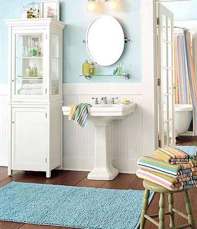 因為其空間的狹小,就特別需要將所有基本功能和特色凝縮在一起,而且,要盡量使有限的空間看上去更大些,更動人些。 在小浴室中,洗手盆和馬桶盡可能用較小的型號,以節(jié)省有限的空間。此外,馬桶、盥洗盆可以采用懸壁式,讓這間浴室產生空間擴大的感覺。小浴室中的所有水龍頭與配備最好都是以白色為主,這樣才有有相當?shù)囊恢滦。若是充斥太多顏色,整個空間會顯得過分雜亂。雖然這種衛(wèi)生間面積很小,但并不必然比大浴室缺少吸引力。 在小浴室選擇潔具、配件、裝飾品、以及其它材料的時候,必須要充分考慮尺寸大小、顏色、圖案或質地的統(tǒng)一性。這樣的話,不管浴室風格是怎樣的特定,抑或是怎樣的組合,都能保持一種強有力的風格連貫性。還必須從實用的角度出,小地毯、舒適考究的椅子、精致的墻面以及垂簾固然可以創(chuàng)造傳統(tǒng)的浪漫情調,但應注意到過高的濕度和水漬在小空間中更加容易損害裝飾材料,破壞精心營造出的視覺效果,給自己日后的使用造成不必要的麻煩。