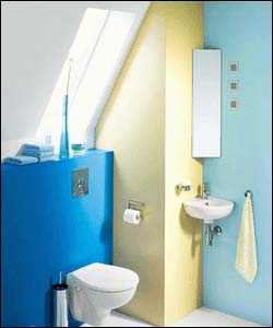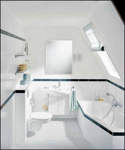 可以傾斜屋頂的下面安裝浴缸,充分利用這個空間。