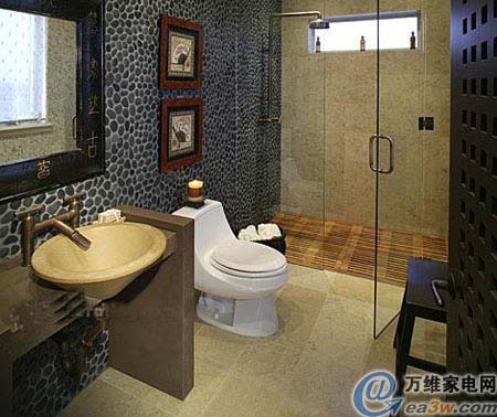 白色一直是衛(wèi)浴間主打顏色,雖然看上去清爽干凈,但色彩太過單一冷淡,已不能滿足人們審美需求。打破單色空間束縛,繽紛的色彩已完全走進(jìn)衛(wèi)浴間內(nèi)。它的變化多姿給衛(wèi)浴間帶來不同效果,而手工彩繪的潔具,更迎合了追求美感與浪漫的人們。將精制的手繪圖案與白色釉面衛(wèi)生潔具結(jié)合,在色彩巧妙應(yīng)運(yùn)中,使人身心放松恢復(fù)精神,更可在配色的樂趣中將主人個(gè)性展現(xiàn)淋漓盡致,使簡(jiǎn)單的衛(wèi)生間不再單調(diào)。