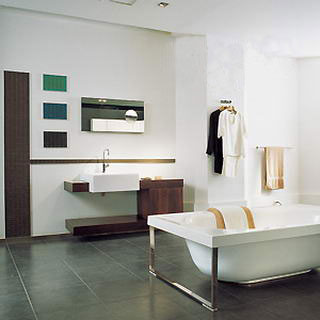 優(yōu)雅出場的衛(wèi)浴間因?yàn)榭臻g的富余可以任由自己設(shè)計(jì),墻面、地面的瓷磚可以拼貼出圖案,各種設(shè)備可以選擇統(tǒng)一造型,甚至能使用壁紙來裝扮衛(wèi)浴間。