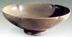 在東晉晚期出現(xiàn)的蓮瓣紋,在南朝時(shí)成為越窯青瓷的主要紋飾。器物上裝飾有小而密集的褐彩。器物以日用品為主,胎、釉分為兩種。一種胎質(zhì)致密,胎呈灰色,施青釉。另一種胎質(zhì)粗松,呈土黃色,外施青黃釉或黃釉。
