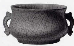 哥窯釉質(zhì)純粹濃厚,不甚瑩澈,釉內(nèi)多有氣泡,如珠隱現(xiàn),故通稱"聚沫攢珠"。釉色寶光內(nèi)蘊,潤澤如酥。紋片多種多樣,以紋道而稱之有鱔魚紋、黑藍紋、淺黃紋、魚子紋;以紋形而稱之有綱形紋、梅花紋、細(xì)碎紋、大小格紋、冰裂紋等,總名為百極碎。哥窯器物傳世的以各式瓶、爐、洗、盤、碗、罐為常見。但哥窯窯址仍未確認(rèn),成為中國陶瓷史上的懸案之一。