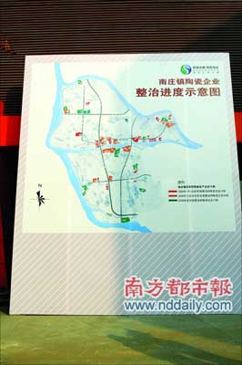 南莊一些陶企廠區(qū)內(nèi)貼有整治計劃進度表。