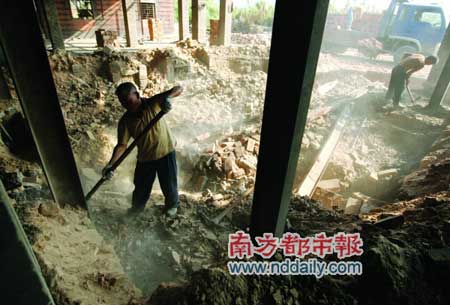 今年11月羅村一陶企搬遷,工人們清拆陶窯。禪城2008年底前,將淘汰90家低端陶企。