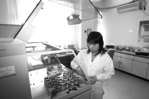 位于南莊的華夏陶瓷研發(fā)中心內(nèi),工作人員正在分析陶瓷原料的成分。