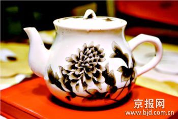 走馬觀花地看了一圈,沒有發(fā)現(xiàn)值得買的東西。正打算離開,玻璃櫥窗里的一把茶壺吸引了我,壺身瑩潤的白色釉面上,用濃淡不一的墨色畫了一枝折枝牡丹,牡丹顯得十分嬌艷,婀娜多姿;與之相呼應(yīng)著,壺蓋上也繪了一枝牡丹。我讓老板把茶壺拿出來,仔細(xì)觀看,這是一件清代光緒的茶壺,于是開始和老板講價(jià)。老板很會(huì)叫苦,說什么生意不好做,錢都到股市上去了。我一口咬定就一千元,一分不加,最后成交。