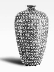 制作冰裂紋釉,要對坯、釉原料的收縮比例有準(zhǔn)確的控制,過之與不及都不能奏效。施釉的厚度也至關(guān)重要,釉薄,不起紋片,釉厚了,燒制時不是將坯體拉裂、變形,就是釉面嚴(yán)重剝落。燒成是一道難關(guān),窯內(nèi)的一氧化碳淡了,釉色不出,濃了,釉面又會吸煙變色,燒成溫度的曲線控制更是直接影響著效果,所以冰裂紋的成品率極低,傳世作品很少。
