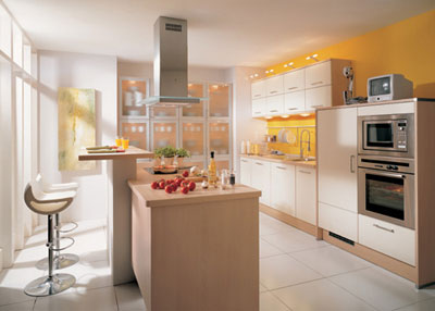 所謂“通透”,是指廚房與餐廳合并。這種情況就餐時(shí)上菜快速簡(jiǎn)便,能充分利用空間,較為實(shí)用。只是需要注意不能使廚房的烹飪活動(dòng)受到干擾,也不能破壞進(jìn)餐的氣氛。最好要盡量使廚房和餐廳有自然的隔斷或使餐桌布置遠(yuǎn)離廚具,餐桌上方的照明燈具應(yīng)該突出一種隱形的分隔感。