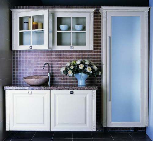 將往昔的魅力與現(xiàn)代生活結(jié)合在一起,永遠是設計師創(chuàng)新的源泉。浴室家具門板上的刀切紋路,小巧古典的柜門把手,這些細節(jié)跟過去在舊電影中看到的一樣,呈現(xiàn)著一股凝固住時間的懷舊氣息。每日一小時的衛(wèi)浴時光成為鄉(xiāng)野中的小憩,帶著懶洋洋的悠閑氣質(zhì)!