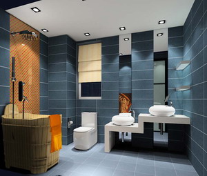 用瓷磚冷、暖色的對比來裝飾浴室,絕對是一個好方法。藍(lán)色瓷磚對光的反射似乎讓人有置身海洋的夢幻感覺,用在干區(qū)呈現(xiàn)的效果冰冷清冽。橘色系的瓷磚的散發(fā)溫暖柔和平衡了浴室色彩,整個色彩環(huán)境讓置身沐浴的人體會溫暖中的一絲舒爽。