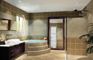 醇厚濃郁的咖啡色受到越來越多上層人士的青睞,用博洛尼深咖啡色瓷磚作為主色裝飾墻面和地面既顯檔次又便于收拾打理。在長方形的衛(wèi)浴空間中,淺色瓷磚大面積的鋪貼墻面,U型的咖啡瓷磚當(dāng)之無愧成為浴室中最具創(chuàng)意的設(shè)計,墻面與地面聯(lián)合貫穿,將衛(wèi)浴分隔為兩個部分。