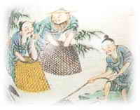 仕女圖 仕女圖在五彩瓷器上比較常見,有游園的,執(zhí)扇的,乘涼的,戲嬰的,也有在器物上突出畫一個(gè)仕女。飄逸凌云,形象優(yōu)美,畫筆傳神,栩栩如生。