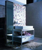 衛(wèi)浴主題墻的魅力在于,它的色彩和廓形能為整體衛(wèi)浴增添醒目的時尚感。浴室家具、面盆、龍頭、浴室鏡、瓷磚馬賽克的整體搭配創(chuàng)造出衛(wèi)浴中極富個性的視覺核心,還有無限快樂的主題衛(wèi)浴生活。