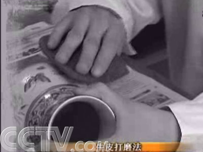 主持人:就是要根據(jù)一個(gè)器物,它平常使用的習(xí)慣和判斷,哪些地方該磨,哪些地方不該磨,它如果把它放在里面,它不能人為的去控制的話,可能都哪都磨到了。不該磨的地方也磨到了,那么出現(xiàn)這種情況的話,大家就要考慮考慮它的真假了。要說把這個(gè)器物放在這個(gè)里面,是顯得比較的就是自然,就是整個(gè)的那個(gè)磨的過程。但是現(xiàn)在呢,其實(shí)除了這種跟沙子這么打交道,打滾以外呢,人們還有一種方法,我們也要通過一個(gè)短片來看一下,那就是噴沙消光法。