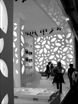 設(shè)計(jì)師何朝富說,ArtDeco是一種將圖案鏤繪在家居中的華麗藝術(shù),作為上世紀(jì)20年代ArtDeco裝飾風(fēng)格的輪回,荷蘭人托德布歇爾將其在奢侈品行業(yè)內(nèi)重新演繹并吸引了全世界的眼球,ArtDeco風(fēng)潮首先出現(xiàn)在時(shí)裝界“最大膽、最具戲劇效果”的麥考林高級(jí)成衣店的店內(nèi)裝飾中。此次米蘭衛(wèi)浴展上,像CATALANO,REGIA等國際衛(wèi)浴品牌都把ARTDECO新裝飾主義貫徹得很到位,CATALANO甚至將整個(gè)展館的幾面墻面都采用了雕鏤樹葉圖案,片片“樹葉”中透出柔和的燈光,讓展館顯得靈動(dòng)而浪漫,成為ARTDECO最佳的立體詮釋;而REGIA則將衛(wèi)浴間的墻面以ARTDECO風(fēng)格鋪陳出一派黑白風(fēng)情,夸張的鏤花圖案在墻面上大膽張揚(yáng),衛(wèi)浴間的玻璃門、鏡面、浴室家具上都鏤繪著各種取自森林藤蔓、花卉、昆蟲蝴蝶的圖案,讓衛(wèi)浴的表情變得細(xì)膩多情。