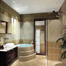 瓷磚拼貼方法的變化多端使浴室也呈現(xiàn)多樣的變幻,色彩的配合運(yùn)用、形狀的多樣搭配、裝飾線條的精心設(shè)計(jì)都賦予浴室全新的感覺。