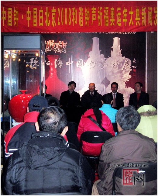 【德化網(wǎng) 訊】 記者從12月28日上午在北京大鐘寺古鐘博物館舉行的新聞發(fā)布會(huì)上了解到,“和諧鐘聲、祈福奧運(yùn)”中國(guó)鐘·中國(guó)白2008北京鳴鐘祈福奧運(yùn)年大典暨中國(guó)瓷都·德化陳仁海中國(guó)白藝術(shù)展即將于2008年元旦零點(diǎn)時(shí)刻舉行。