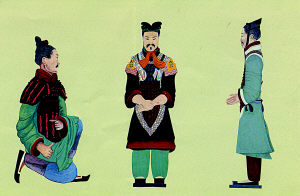 這里還值得一提的是,秦俑服飾色彩基調(diào)是以紅、綠為主,如粉綠色袍衣約占統(tǒng)計(jì)總數(shù)的42.65%,紅色袍衣約占31.8%,粉綠色俑褲占52.5%,紅色占18.4%,給人的總體印象是大紅大綠。