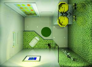 濕區(qū)和干區(qū)用擋水條分隔,擋水條由鋼化玻璃以及活動(dòng)的浴簾組成,兩邊的玻璃隔斷寬420mm,中間有660mm寬的門洞,出入自如。