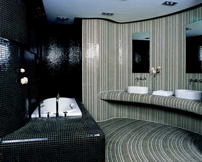 奢華的浴缸,高貴浴柜,優(yōu)雅的面盆,曖昧的坐便……所有衛(wèi)浴產(chǎn)品和飾物美滿的融合在一起,一切都沉靜在精致而冷酷的背景里。正由于馬賽克的存在,才使衛(wèi)浴環(huán)境與其他家居空間截然不同,它們不是衛(wèi)浴的配角,是衛(wèi)浴環(huán)境熠熠生輝的最大功臣。