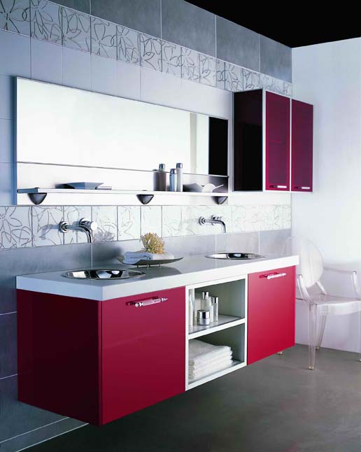在大浴室中用墻面分隔區(qū)域是個(gè)值得稱道的小計(jì)謀,平凡的米色墻面和地面雖然干凈但并不出奇,但加上一條Art deco風(fēng)格的紅色裝飾線就大大不同,轉(zhuǎn)瞬間就成為浴室中最惹眼的設(shè)計(jì),瓷磚顏色和圖案成為女性