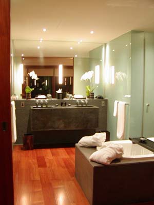 衛(wèi)浴空間不再是以私密為特征,它是開放的,不僅將睡覺、沐浴、化妝各功能區(qū)連成一片,作為住宅內(nèi)最精彩的部分向來(lái)訪者開放,而且與戶外空間相關(guān)聯(lián)。看得見風(fēng)景的浴室,是最吸引人的要素。戶外的植物、天光云影被引入衛(wèi)浴空間中,追求的是一種沐浴在大自然中、天人合一的感覺。為了突出休憩的空間特質(zhì),衛(wèi)浴空間內(nèi)通常還設(shè)有長(zhǎng)椅或臥榻,在穿上衣服之前,可以在臥榻上休息一會(huì)。
