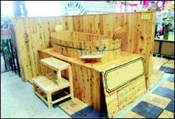 據(jù)了解,目前市場(chǎng)上的普通浴缸大多只有50多厘米高,除非躺在里面才能讓水浸泡全身,泡澡時(shí)的其他享受往往受到影響。木桶的深型設(shè)計(jì),可令沐浴者全身完全浸泡在水中,最淺的木桶也要68厘米,借助自然水力按摩身體,可以達(dá)到增強(qiáng)心肺功能,迅速消除疲勞的功效。