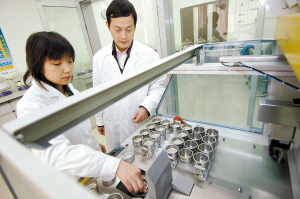 華夏建筑陶瓷研發(fā)中心人員正在測試