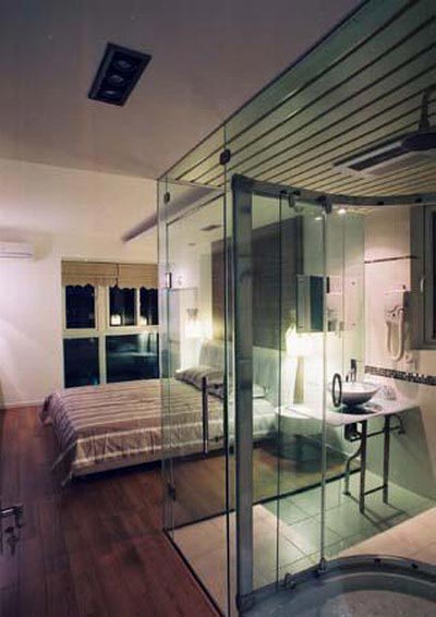 主臥的衛(wèi)生間沒有采光窗戶,或是主臥的空間看起來并不大,怎么辦?這幾年的裝修中,一些前衛(wèi)的人,贊同設(shè)計(jì)師的提議,將衛(wèi)生間的門墻打掉,裝上大面積的玻璃,營造出通體透明的衛(wèi)浴空間,并形成了大空間的效果。