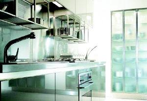標(biāo)準(zhǔn)長(zhǎng)度可折疊的玻璃門(mén),采用寬闊的磨砂玻璃,柜內(nèi)餐具、器皿、廚具若隱若現(xiàn)。生動(dòng)的背景光投射下,玻璃櫥柜使整個(gè)廚房營(yíng)造出一種溫馨浪漫的氛圍。美觀(guān)大方的玻璃櫥門(mén),有著不容小覷的實(shí)用性,通風(fēng)透氣,尋找東西也十分方便,不會(huì)因?yàn)橐乙粯訓(xùn)|西,翻箱倒柜;櫥柜內(nèi)置輕巧的觸摸式感應(yīng)燈,白天日光和夜晚燈光的反射,能使廚房更明亮。玻璃櫥柜清淡的色澤,配合時(shí)柔和、時(shí)耀眼的光亮,化解了銀灰色金屬質(zhì)感廚具、櫥柜的枯燥乏味,頃刻之間,就把廚房變得平和而有趣。